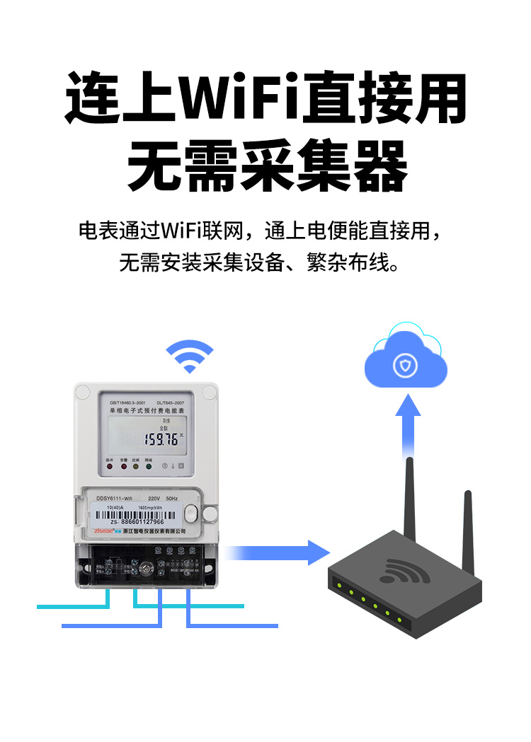 這種抄表方式在青年公寓,白領(lǐng)公寓,酒店式公寓采用比較多,這種方式直接聯(lián)上公寓里的wifi上遠(yuǎn)抄服務(wù)器,再通過電腦診斷或手機(jī)app就能直接使用,這種智能電表使用量不大的情況下,用戶可自行采購安裝,WiFi電表安裝簡(jiǎn)單方便,圖如下: