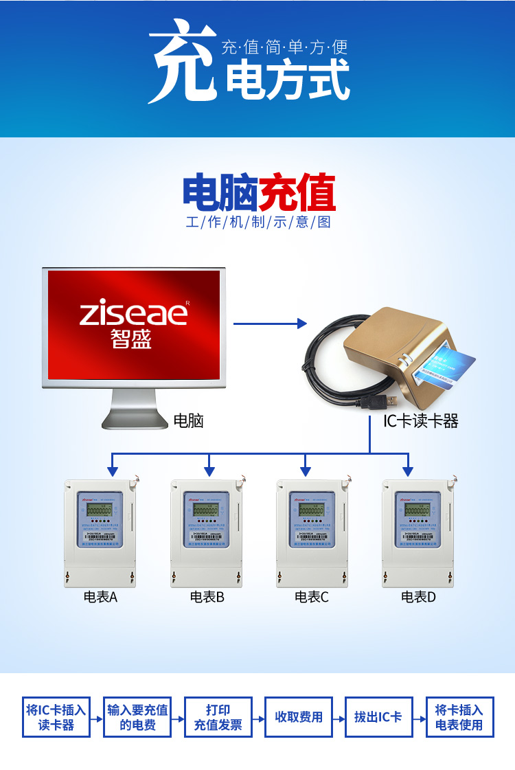 (二)充電方式:三相預(yù)付費(fèi)電度表(公用表)的充值系統(tǒng)安裝到電腦上,讀卡器連接電腦的USB進(jìn)口,就可以實(shí)現(xiàn)對電表IC的充值,充值成功后用戶就可以插電表使用了,可實(shí)現(xiàn)一表多卡和多表多卡的功能。(具體操作的書面教程和視頻教程可進(jìn)入官網(wǎng)查看)