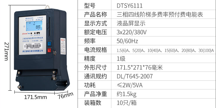 DTSY6111型三相四線階梯多費(fèi)率預(yù)付費(fèi)電能表(以下簡(jiǎn)稱“儀表”)是根據(jù)居民實(shí)際用電狀況所設(shè)計(jì)、制造。它具有較高的準(zhǔn)確度和可靠性。