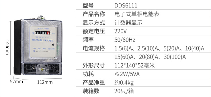 DDS6111型單相電子式電能表,由于采用集成電路和SMT制造工藝,使之測量準確度,穩定性等均得到了可靠保證.適用計量額定頻率為50Hz,額定電壓為220V的單相交流有功電能.