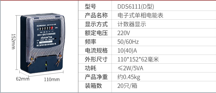 DDS6111型單相電子式電能表,由于采用集成電路和SMT制造工藝,使之測量準確度,穩定性等均得到了可靠保證.適用計量額定頻率為50Hz,額定電壓為220V的單相交流有功電能.